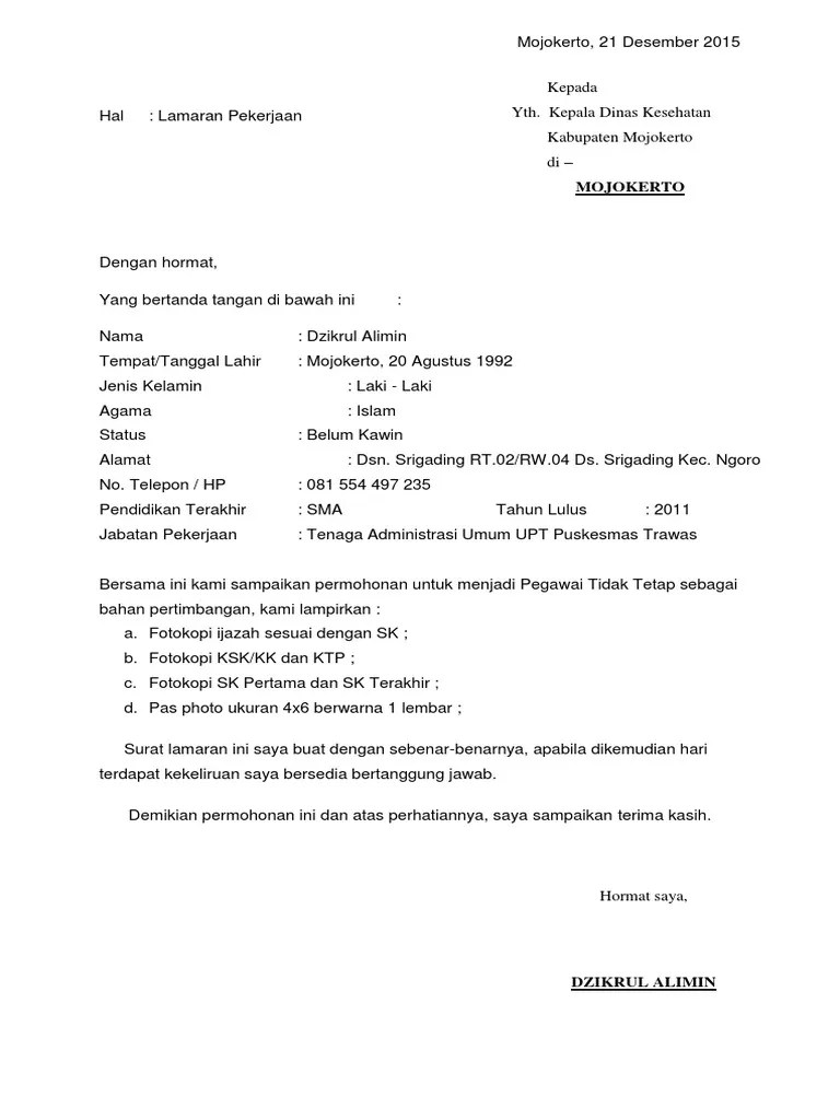 Surat lamaran ditujukan kepada ibu gubernur jawa timur di surabaya,. Calon pegawai pemerintah dengan perjanjian kerja di lingkungan pemerintah. Contoh surat lamaran yang ditunjukan kepada bupati . Dengan hormat, yang bertanda tangan di bawah ini : Pelamar mengajukan permohonan secara tertulis yang ditujukan / dialamatkan kepada : Badan kepegawaian negara (bkn) telah resmi membuka pendaftaran calon asn tahun 2021. Dengan ini mengajukan permohonan kepada bapak untuk dapat diterima menjadi. Pendaftaran telah dibuka pada 30 juni hingga 21 juli 2021. Ditandatangani dengan pena bertinta hitam (format dapat diunduh pada Kabupaten lampung tengah tahun 2021.